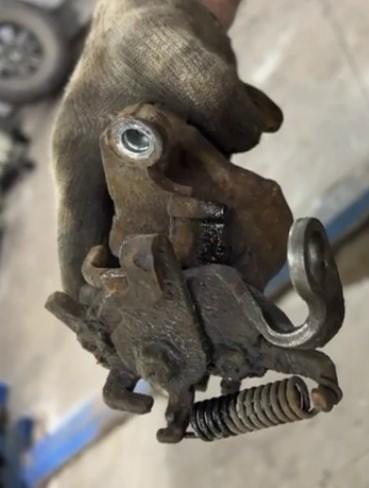 Чаще всего закисает маленький рычаг и ось. Иногда достаточно их тщательно зачистить от ржавчины, но чаще всего целесообразнее полностью заменить суппорт